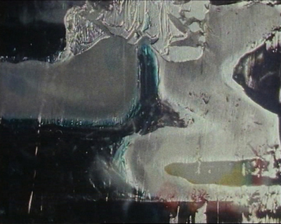 A sequence of film frames were painted and transformed in-camera through optical printing, using reflected and refracted light to animate and reaffirm the film surface.