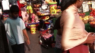 Pea throwing and video editing are used to analyse and manipulate visual and physical space. Filmmed in the market place in Whitechapel, East London.