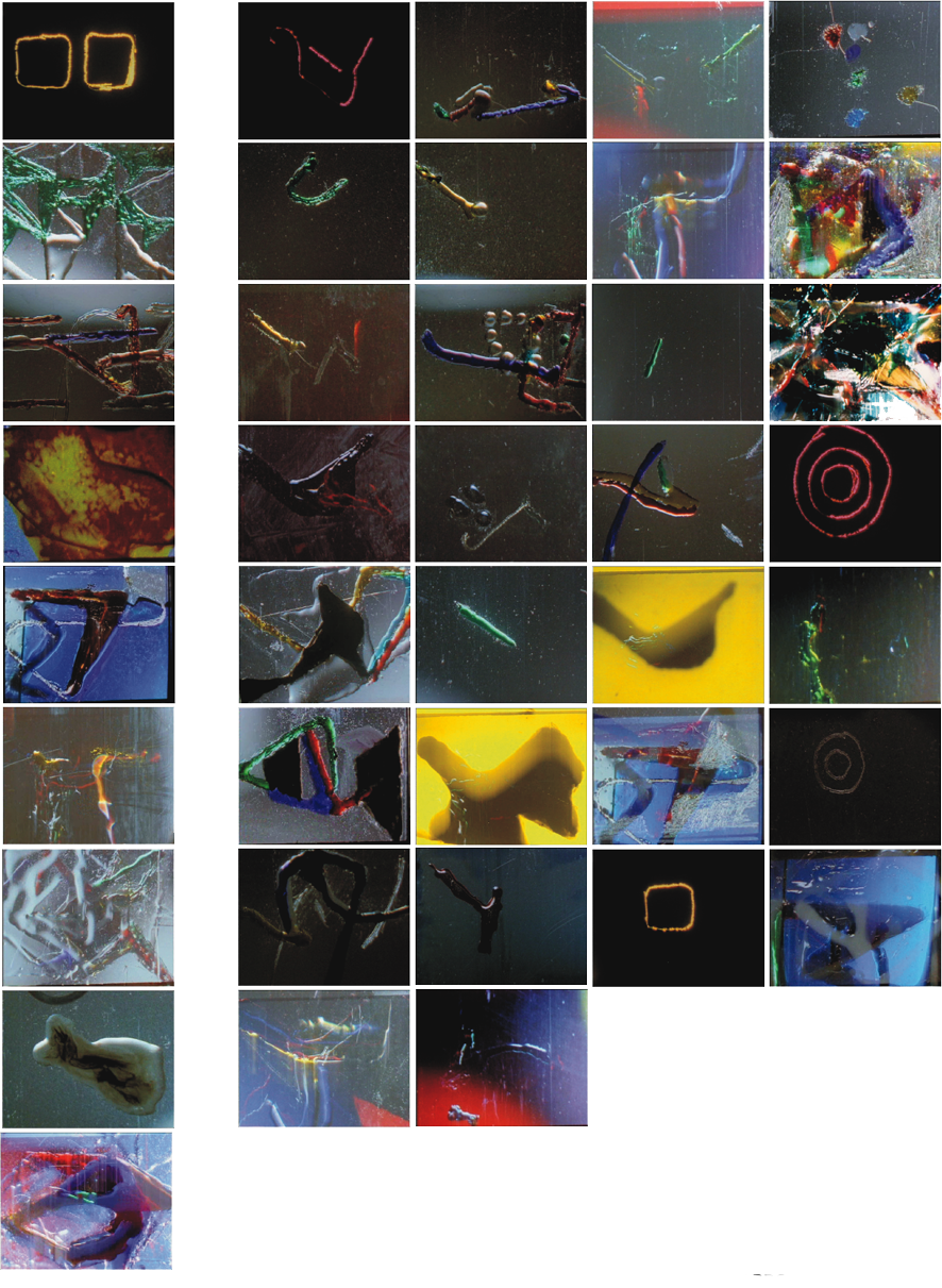 Biomorphic and graffiti-like marks and gestures, formed though an exploration of counterpoint, colour, refraction and the physical and illusory properties of paint, film and light.